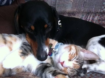 Needless to say, having two pets (of different species, what!) was definitely awkward at times. Deisel didn't like having a new animal absorbing love in the apartment, and because he got really excited around the kitten, we had to separate them for several weeks, which wasn't fun for anyone. Knowing now what I should have known then, I can offer the
